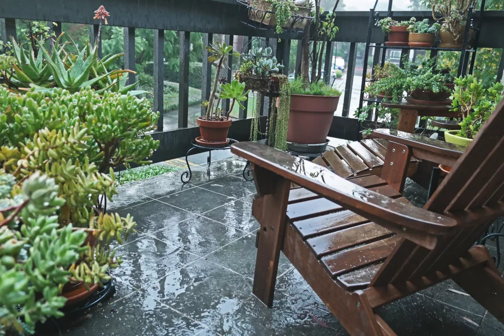 - Denken Sie bereits bei der Balkongestaltung an Elemente wie Blumentöpfe, Windschutz oder Möbel. Selbst minimaler Versatz kann Wasser an bestimmten Stellen stauen, die Entwässerung muss diese „Hindernisse“ berücksichtigen.